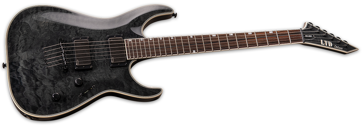 LTD MH-1001NT сочетает элегантность стеганого кленового топа с агрессивным характером активных EMG 81/85 Metalworks звукоснимателей. Глубоко вклеенный трехсекционный кленовый гриф с накладкой из маккасар эбони обеспечивает потрясающий сустейн и мягкий отклик. Tonepros Locking TOM бридж со струнами сквозь корпус и замковые колки LTD гарантируют абсолютную стабильность строя. See Thru Black покрытие придает инструменту изящной, но бескомпромиссной эстетики.