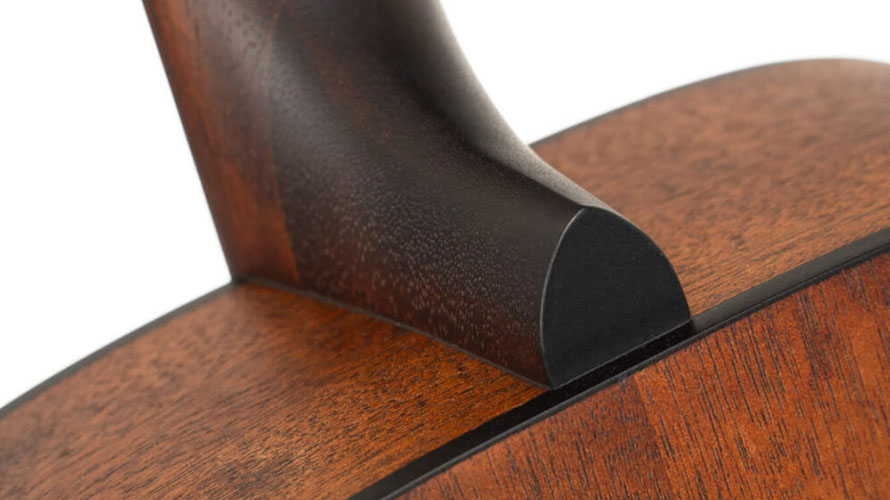 Нижняя дека и обечайки также выполнены из махагони. Это усиливает теплоту звучания. Ламинированная конструкция добавляет прочности. Инструмент хорошо переносит изменение климата. Не боится перепадов температуры. Идеален для ежедневного использования. Надежность, которая важна для новичков и опытных музыкантов.