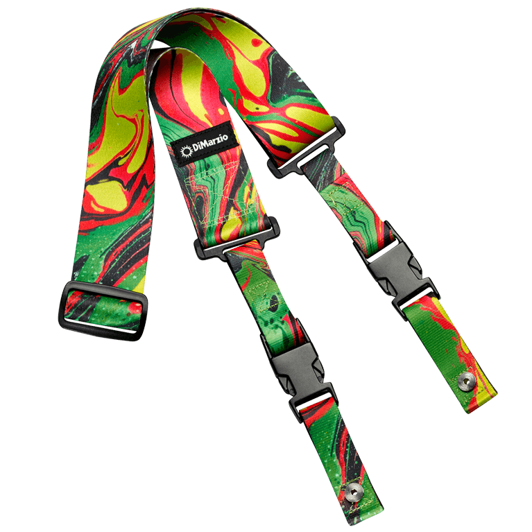 Стів Вай був одним з найперших музикантів, які почали використовувати гітарні ремені DiMarzio ClipLock Quick Release. І він використовує їх вже більше 20-ти років. Для нас велика честь представити нові ремені Steve Vai ClipLock, створені у співпраці зі Стівом. Пізнаване фірмове забарвлення Green Universe було створено під впливом дизайну підписної 7-струнної гітари Вая.