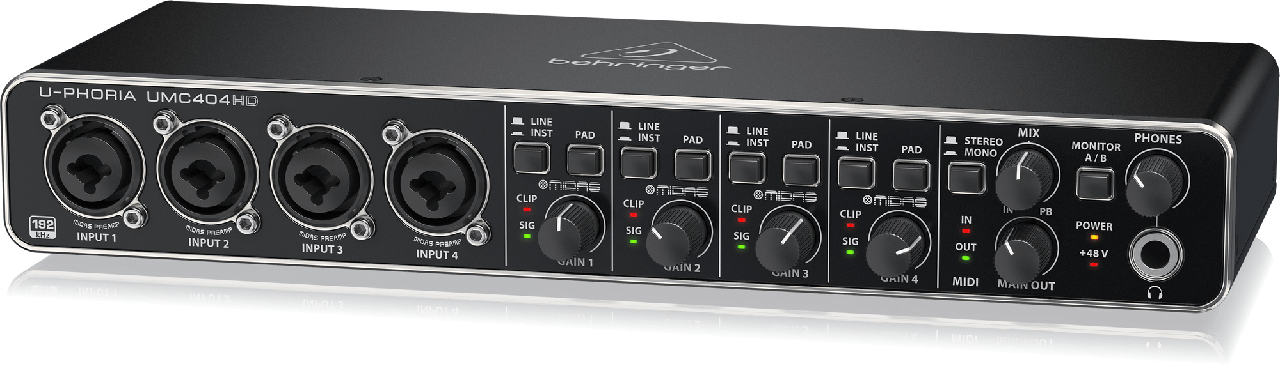 Запишіть ідеальний вокал прямо в комп'ютерну DAW завдяки 4 разюче чистим мікрофонним передпідсилювачам світового класу Midas, що включає фантомне живлення +48 вольт для конденсаторних мікрофонів. Усі вони проходять через студійні перетворювачі 24 біт/192 кГц для найкращої якості звуку. Якщо ви автор-виконавець, продюсер на виїзді або просто потребуєте надійного інтерфейсу для роботи з бек-треками на концерті, наднадійний U-PHORIA UMC404HD допоможе вам блищати в цифровому просторі.