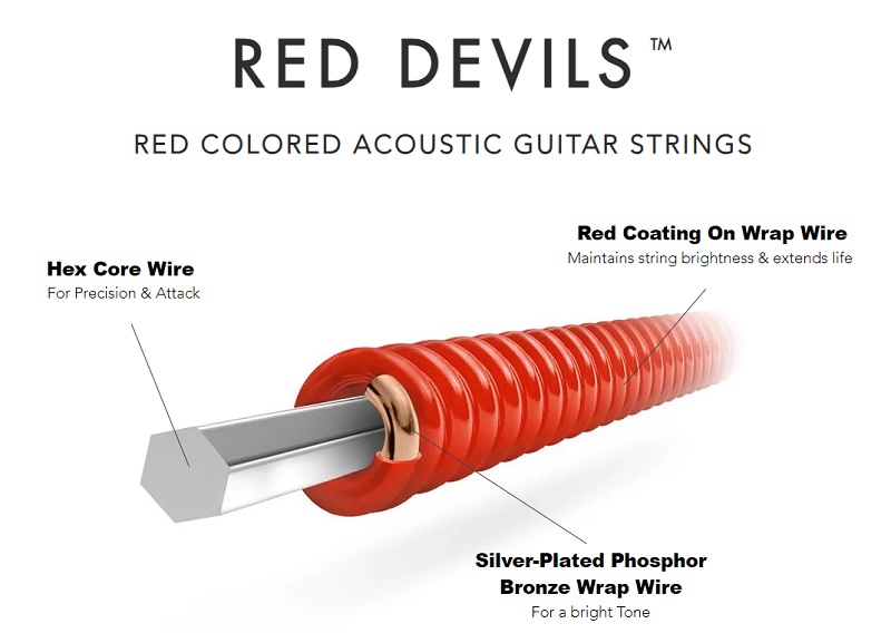 Завдяки шестигранному сердечнику та обмотці з посрібленої фосфор бронзи, їх гучний і агресивний звук доповнює їхній яскравий колір. Всі струни в наборі вкриті червоною версією запатентованого покриття DR K3™, яке забезпечує довговічність, більшу гучність, менше небажаних обертонів, а також видатну чистоту та артикуляцію.