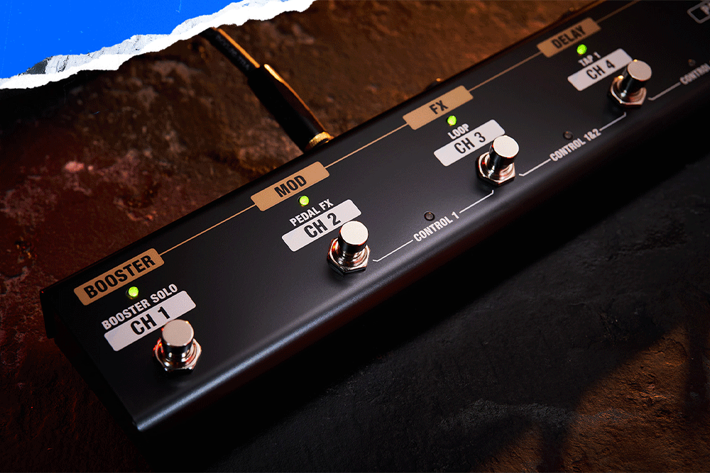 • Перемикачі: Power Control (Standby, 0.5W, Half, Max), Cab Resonance (Vintage, Modern, Deep), Amp Type Switch, Variation, Booster, Mod, FX, Delay, Reverb, Tap, CH1, CH2, CH3, CH4