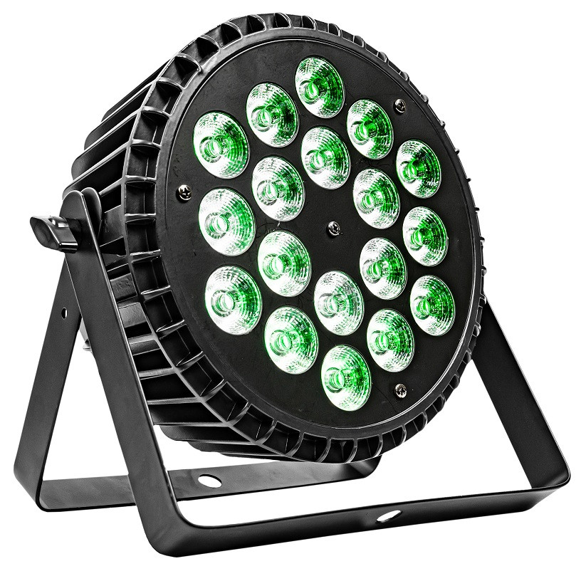 FREE COLOR P1810-A RGBW розроблений спеціально для тих, хто шукає потужне, але водночас універсальне освітлення. Його джерело світла складається з 18 світлодіодів по 10 Вт кожен, що підтримують технологію 4-в-1 (RGBW), завдяки чому користувач може відтворювати понад 16 мільйонів відтінків кольорів. Кут розкриття 25° робить прожектор ідеальним для широкої заливки сцени або зони заходу. Електронний димер у діапазоні 0–100% та строб 1–20 спалахів/сек дозволяють створювати від повільних переливів до динамічних миготінь, залежно від потреб шоу. Прилад підтримує декілька режимів керування, включно з DMX (4 або 8 каналів), авто та звуковою активацією, а також роботу за схемою Master/Slave, що дає можливість легко інтегрувати його у вже існуючі світлові сети.