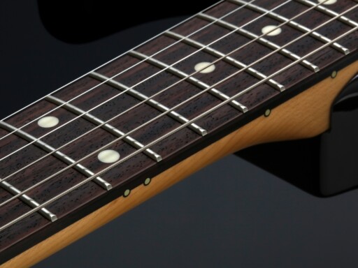 Лади встановлено по легкій дузі, тож кожна струна перетинає їх під прямим кутом. Це вирівнює мензуру, мінімізує контакт та дарує чистіші акорди з яскравішими обертонами — гітара «читається» в міксі навіть під густим дисторшном.