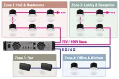 Звукові інсталяції часто вимагають наявності як високого так і низького опору, навіть в одному приміщенні. Як наслідок звукоінженеру доводиться встановлювати кілька окремих підсилювачів або навіть монтувати додатковий зовнішній трансформатор. Однак, підсилювачі серії XMV можуть працювати і в високоімпедансних (70V/100V лінії) і в низькоімпедансних (4Ω/8Ω) режимах одночасно, усуваючи потребу в додатковому обладнанні та помітно спрощуючи процес інсталяції.
