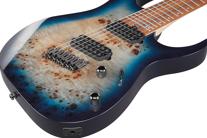 Ibanez RGMS7PB-CBS створена для гітаристів, які грають у понижених строях і потребують чіткості, стабільності та швидкості на всіх позиціях грифа. Мультискейлова конструкція 27"/25.5" вирівнює натяг струн, роблячи низ щільним і читабельним, а верх — зручним для швидких соло. Тонкий гриф Wizard III-7 у поєднанні з 24 jumbo ладами забезпечує максимальну свободу техніки без відчуття втоми. Топ з тополі на корпусі з окуме формує яскравий, пружний і водночас щільний характер звучання. Звукознімачі Ibanez Array 7 MS передають агресивний, сфокусований тон із мінімальним шумом, що ідеально підходить для сучасного металу та дженту. Бридж Mono-Rail із незалежними сідлами підвищує сустейн і усуває взаємний вплив струн. Ця модель поєднує ергономіку, агресивний дизайн і точну інженерію для максимальної продуктивності на сцені та в студії.
